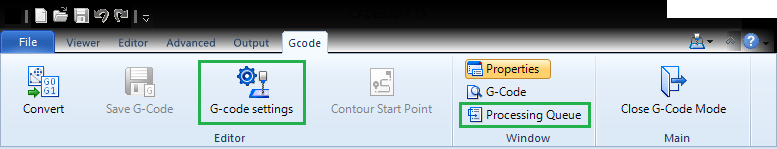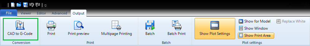 2. Go to the Output tab and select the CAD to G-code command.