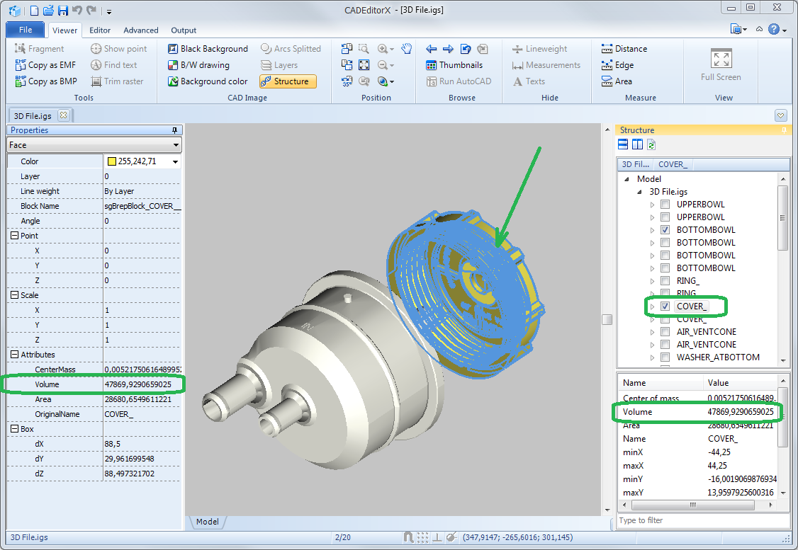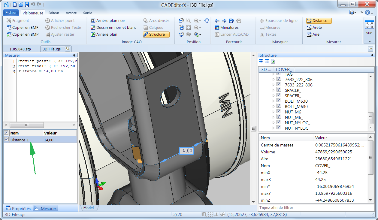 << Cliquez pour afficher la Table des matières >> Navigation : Caractéristiques principales > Mesure d'un dessin 3D |