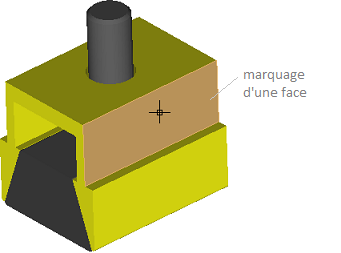Après l'activation d'outil Aire, le logiciel passe au mode de la sélection d'une surface d'un modèle 3D. Lorsque le curseur est placé sur la surface, elle est marquée par la couleur orange. Un clic gauche sur la surface marquée permet d'obtenir l'information sur son aire et les dimensions d'encombrement. On peut quitter le mode de mesure en appuyant sur la touche Echap. Les résultats de mesure sont affichés dans la palette Mesurer.