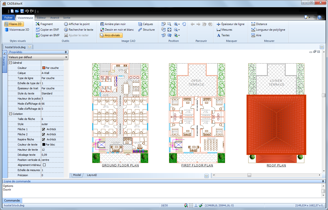 CADEditorX User Interface offre toute une gamme d’outils pour travailler avec des dessins. Il permet de visualiser et éditer des fichiers DWG et DXF, visionner des modèles 3D et images raster, imprimer et convertir un groupe de fichiers, etc.