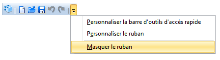 Pour réduire le ruban jusqu’à la barre contenant le nom du programme, dans la Barre d’accès rapide, cliquez sur la flèche noire et choisissez Masquer le ruban.