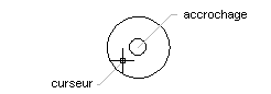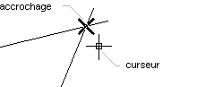 L'accrochage permet d'ancrer un élément à une autre entité. On peut activer et désactiver le mode à n'importe quelle moment de création ou modification. Le curseur est accroché sur des points différents d'entités selon des modes d'accrochage.