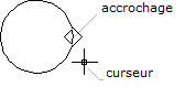 S'accroche au point d'intersection du vecteur de direction dont le premier point est spécifié avec un cercle, un arc ou une ellipse.